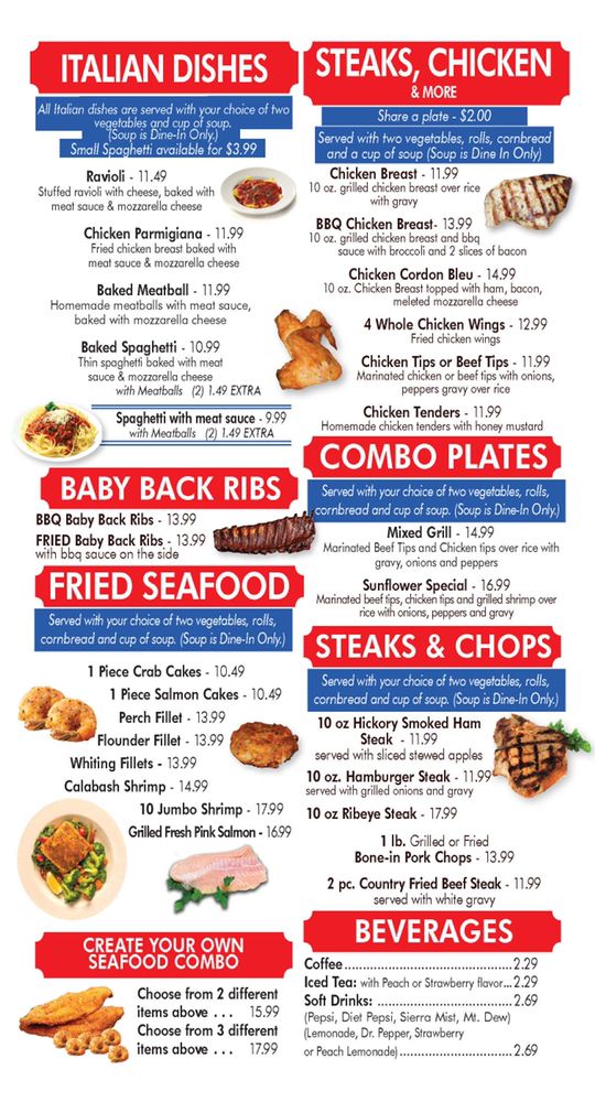 Located in Charlotte, NC, Sunflower Family Restaurant offers a wide range of amenities including takeout, reservations, vegetarian options, and more. Customers praise the friendly service and delicious food, with standout dishes like fried flounder, grits, onion rings, and fried squash receiving high praise. The restaurant is known for its generous portions and cozy atmosphere, perfect for families and groups. While some customers mention slight issues with service or ambiance, the majority rave about the excellent breakfast options and welcoming staff. With a diverse menu and positive reviews, Sunflower Family Restaurant is a must-try spot for those looking for a tasty meal in a relaxed setting.
